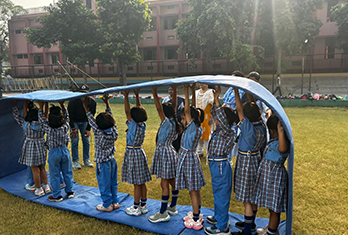 Inside school It is a 3-module program wherein we transform the school ground into camping ground by pitching up 1-2 colorful tents and 10-12 adventure and fun activities depending on the age of the participants. Outdoor World’s technical team will setup activities one day prior to camp and next the day the program is carried out under the supervision of trained and experienced instructors.